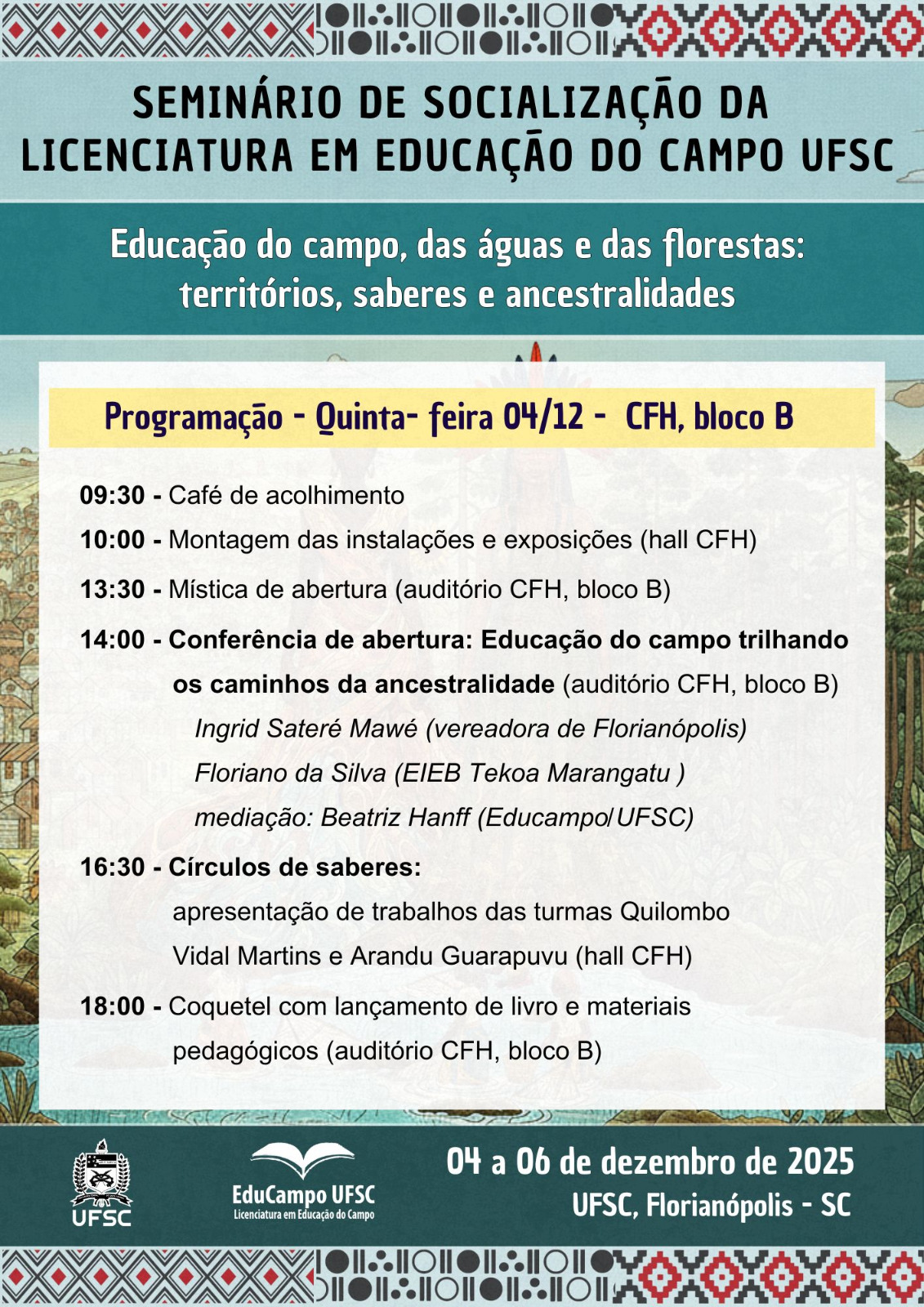 Será 01 (uma) vaga para atuação como Professor Substituto do Ensino Superior na área Matemática/Educação do Campo, no Departamento de Educação do Campo da UFSC em Florianópolis.
