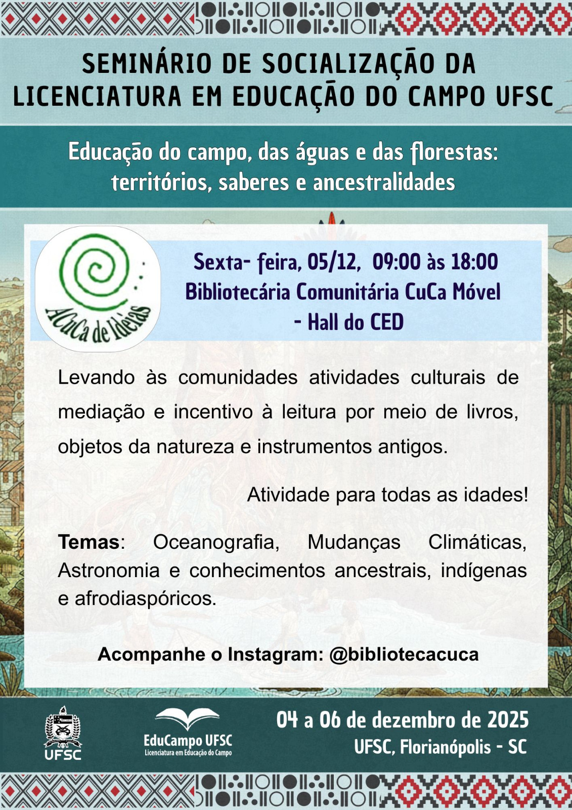 Levando às comunidades atividades culturais de mediação e incentivo à leitura por meio de livros, objetos da natureza e instrumentos antigos